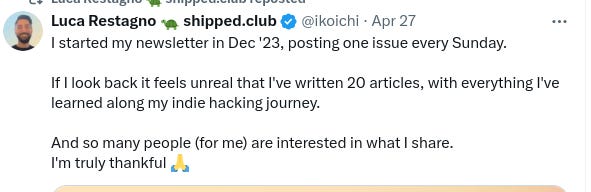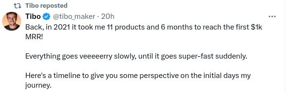 And often, their social media accounts aren’t promoting anything related to their product directly. Things like new features, use cases, etc. They just share things about the indie hacking process.